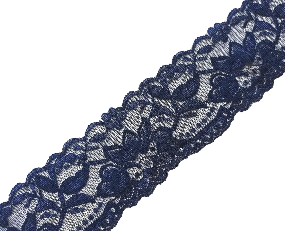 Borta elastická tmavomodrá "kvety"Skladom1,50 EUR/ m1,22 EUR bez DPH