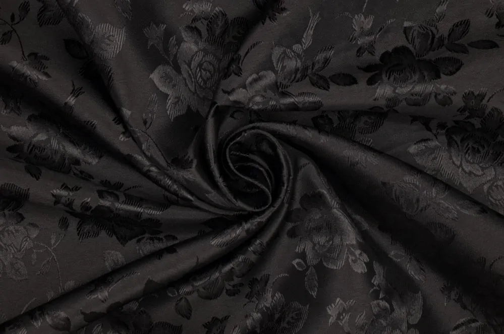 Brokát čierny "kvety, listy"Skladom15,00 EUR/ m12,20 EUR bez DPH