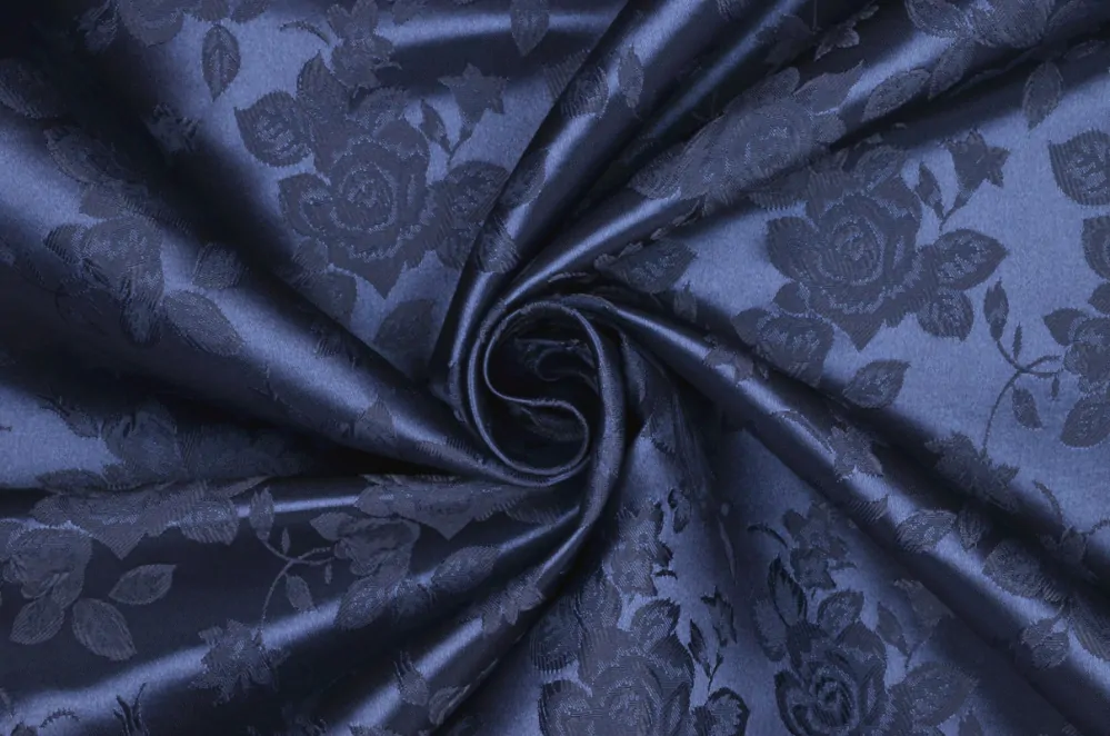 Brokát tmavomodrý "kvety, listy"Skladom15,00 EUR/ m12,20 EUR bez DPH
