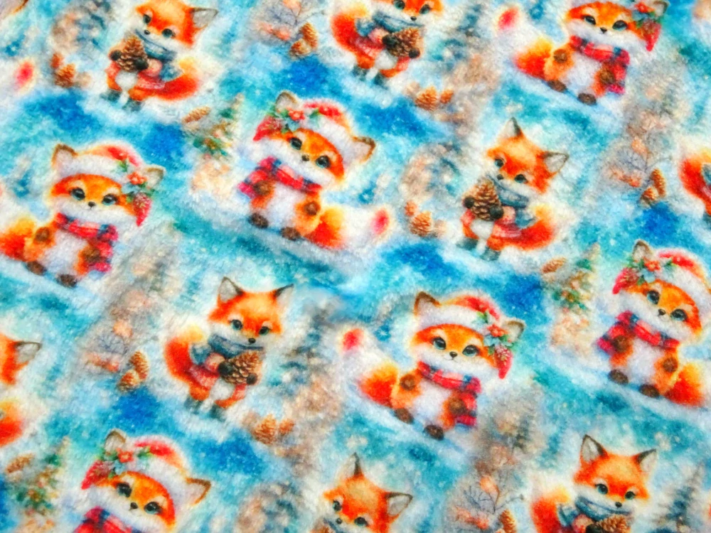 Fleece modrý "líška v zime"Skladom15,00 EUR/ m12,20 EUR bez DPH