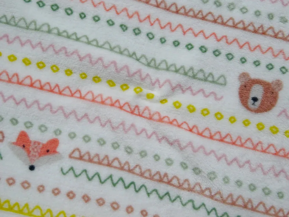 - vzor - macko, líška, žltý, zelený a hnedý kruh, ružový, tehlový, žltý a hnedý cik-cak a pásik