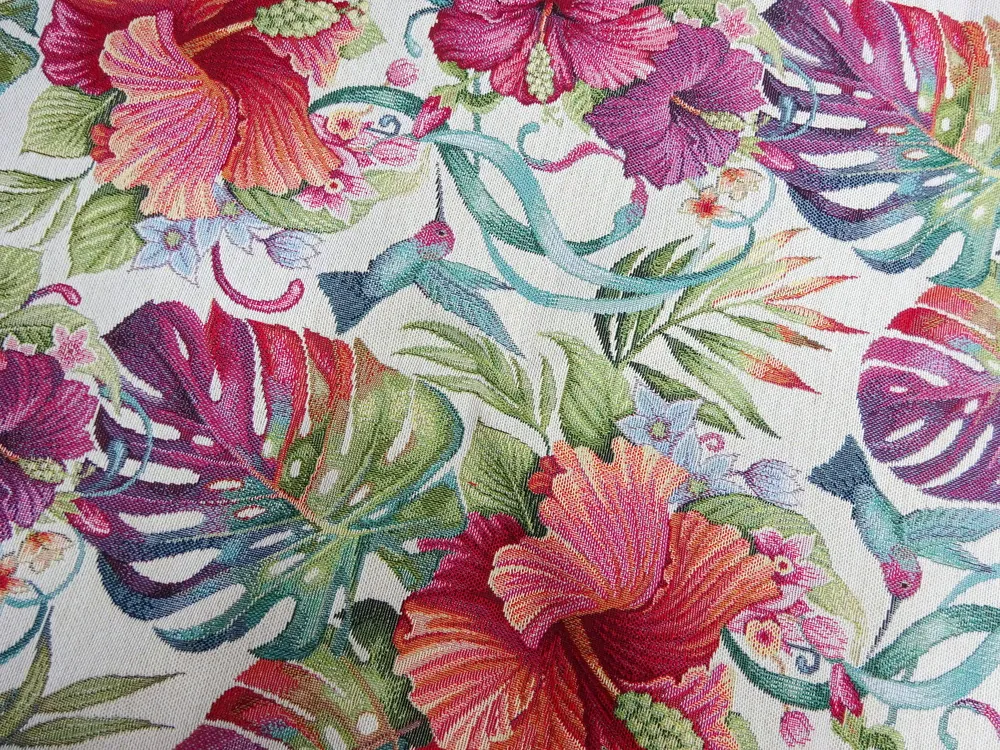Gobelín prírodný "kvety, listy, vtáčik"Skladom17,00 EUR/ m13,82 EUR bez DPH