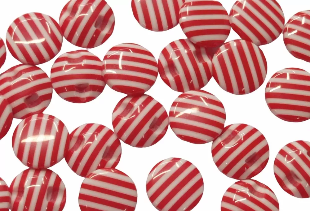 Gombík bielo-červený "pásiky"Skladom0,22 EUR/ ks0,18 EUR bez DPH