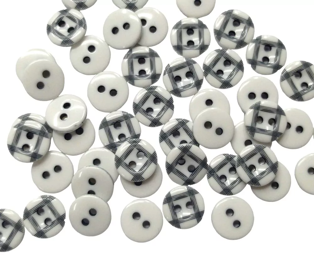 Gombík biely "čierne káro" - 11 mmSkladom0,10 EUR/ ks0,08 EUR bez DPH