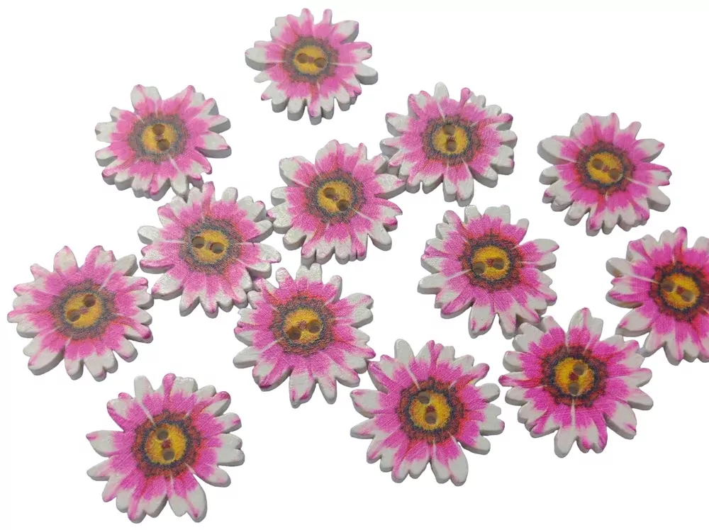 Gombík drevený "bielo-fukskiový kvet"Skladom0,25 EUR/ ks0,20 EUR bez DPH
