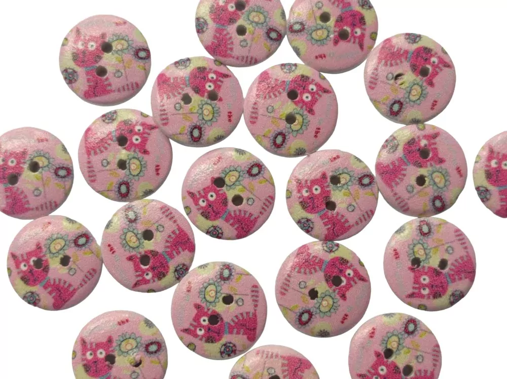 Gombík drevený ružový "mačička" - 15 mmSkladom0,20 EUR/ ks0,16 EUR bez DPH