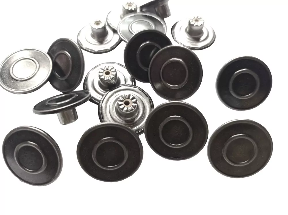 - gombík sa skladá sa z dvoch častí (samotného gombíka a nitu), ktoré do seba narazíte, napríklad kladivom