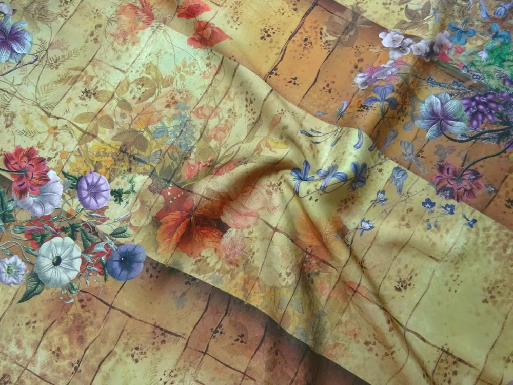 Hodváb béžovo-hnedý "kvety" - Taliansko