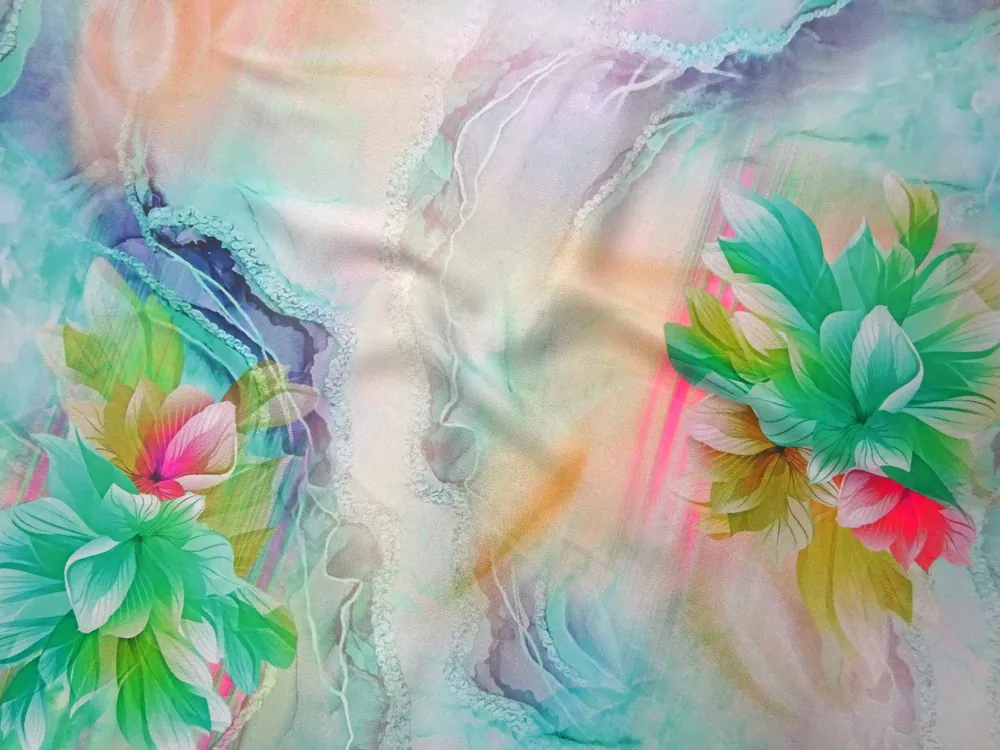 Hodváb tyrkysový "kvety"Skladom16,00 EUR/ m13,01 EUR bez DPH