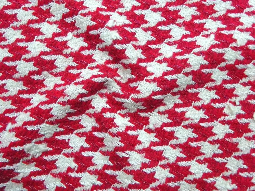 Kostýmovka smotanová "červená kohútia stopa s flitrami"Skladom17,00 EUR/ m13,82 EUR bez DPH