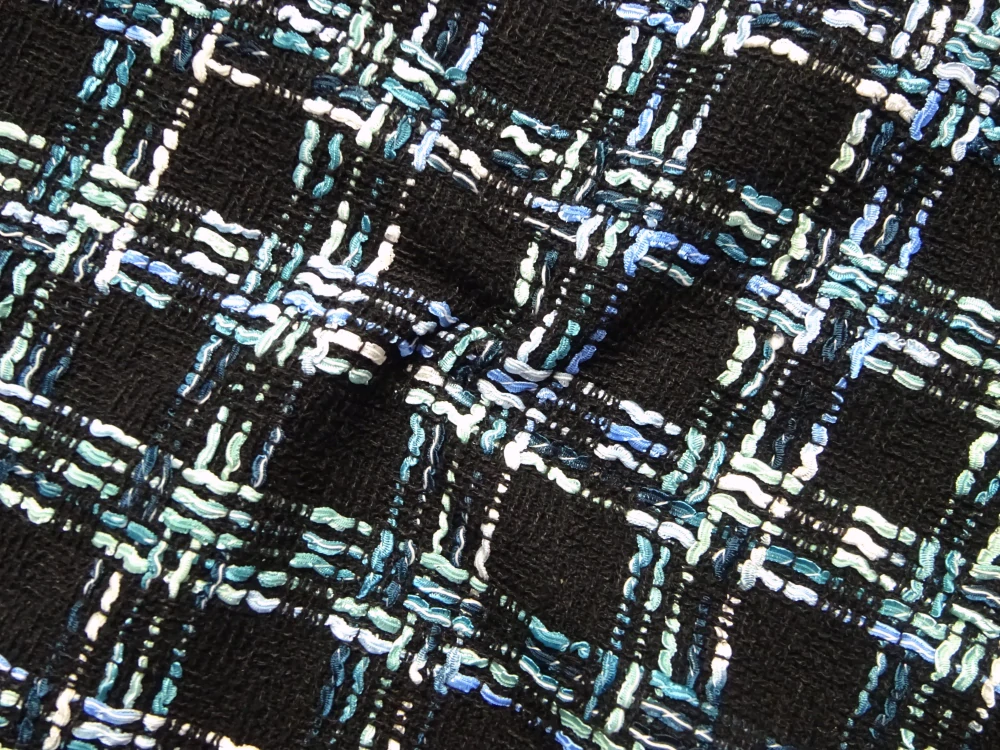 Kostýmovka Chanel čierna "zeleno-modrý vzor"Skladom20,00 EUR/ m16,26 EUR bez DPH