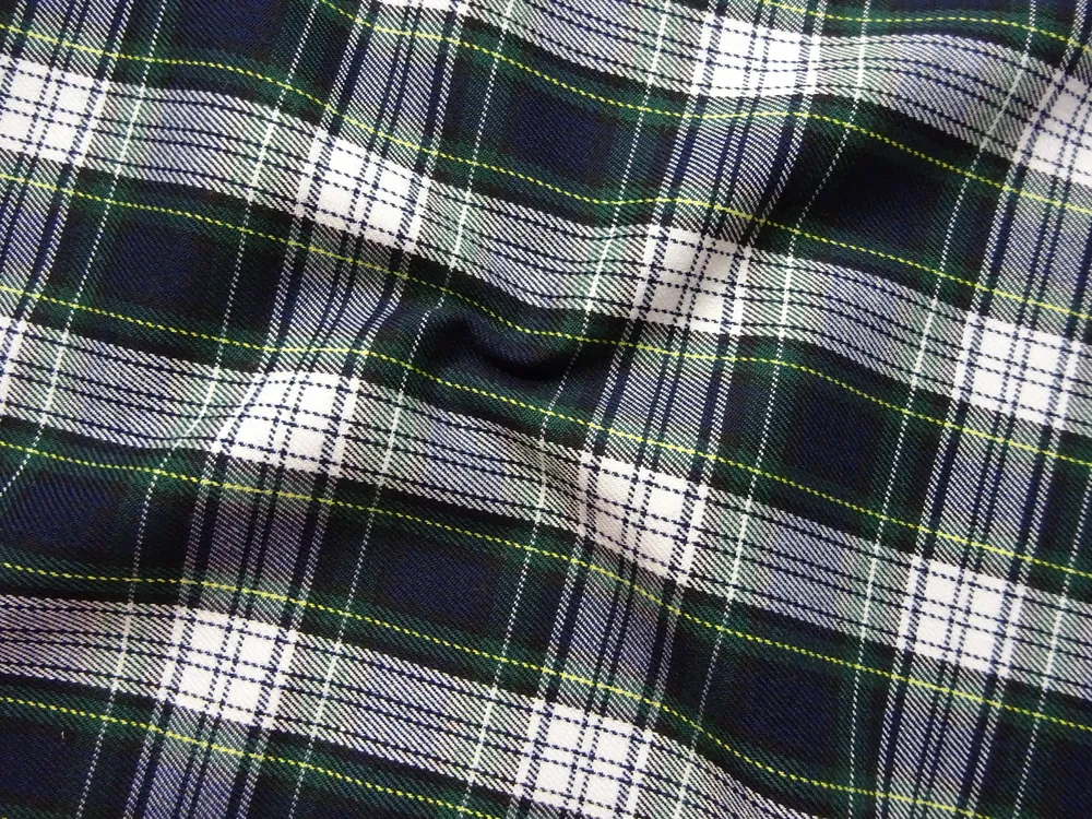 Kostýmovka tmavomodrá "bielo-žlto-zelené káro"Skladom12,00 EUR/ m9,76 EUR bez DPH