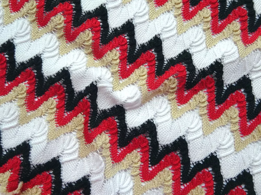 - Krajka bielo-béžovo-červeno-čierna "cik-cak"