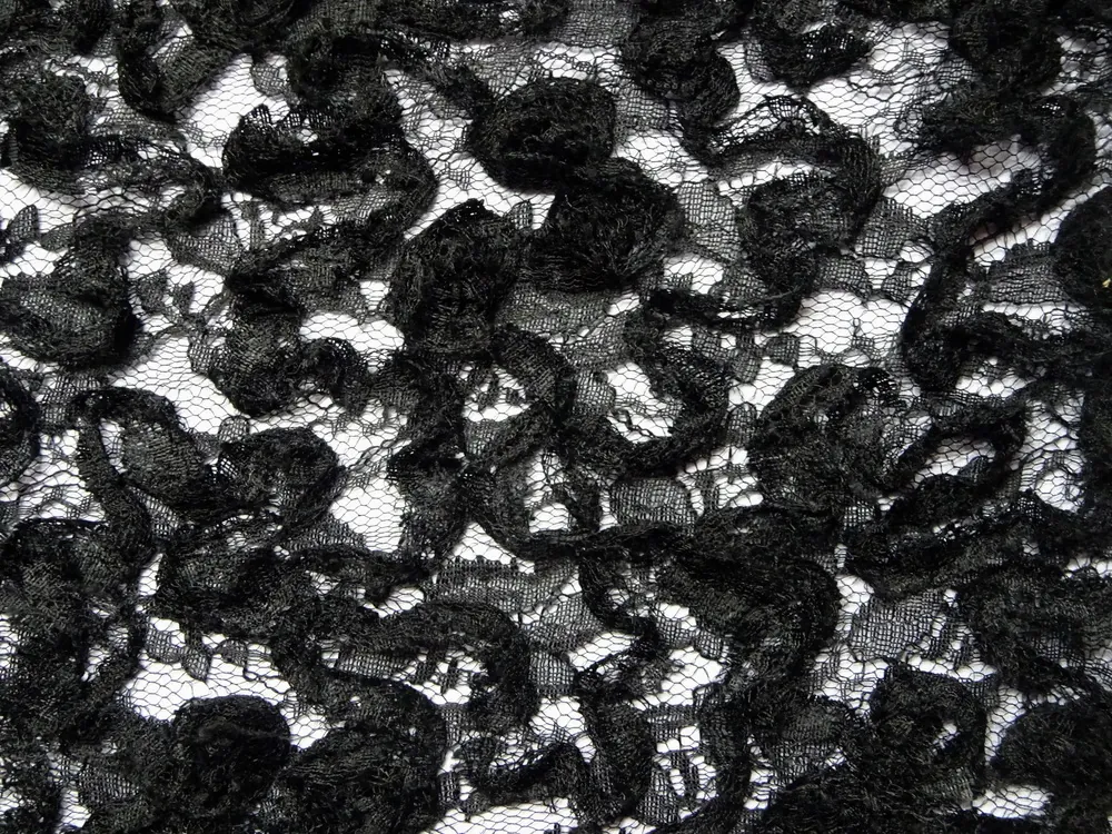 Krajka čierna "kvety, plastický vzor"Skladom14,00 EUR/ m11,38 EUR bez DPH