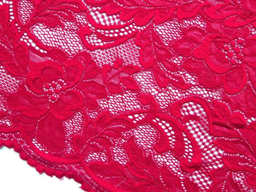 Krajka elastická červená "kvety, listy"Skladom13,00 EUR/ m10,57 EUR bez DPH