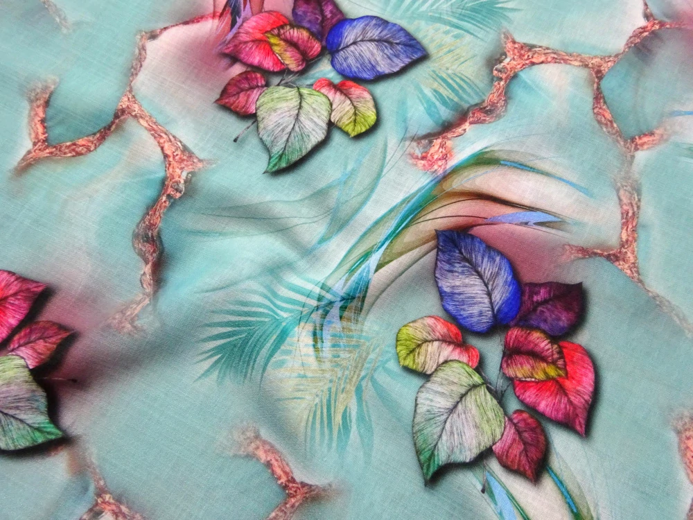 Ľan tyrkysový "listy"Skladom17,00 EUR/ m13,82 EUR bez DPH