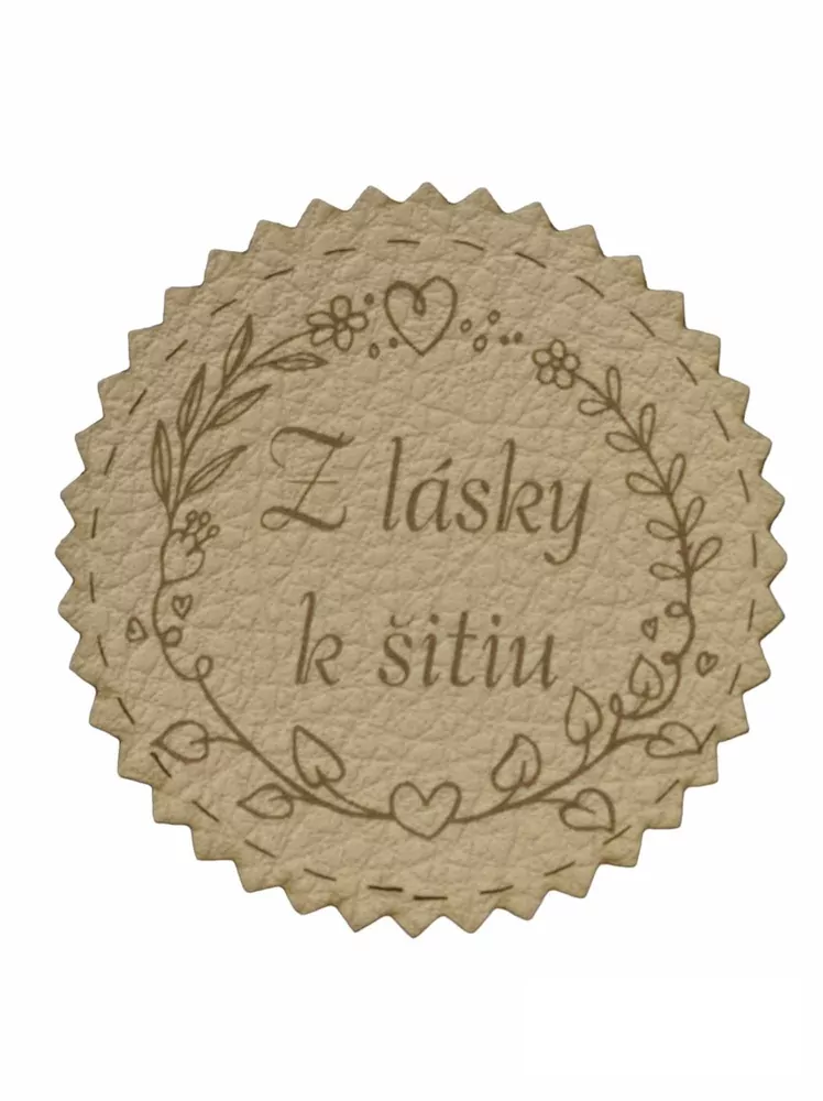 Nášivka koženková béžová "Z lásky k šitiu"Skladom1,60 EUR/ ks1,30 EUR bez DPH