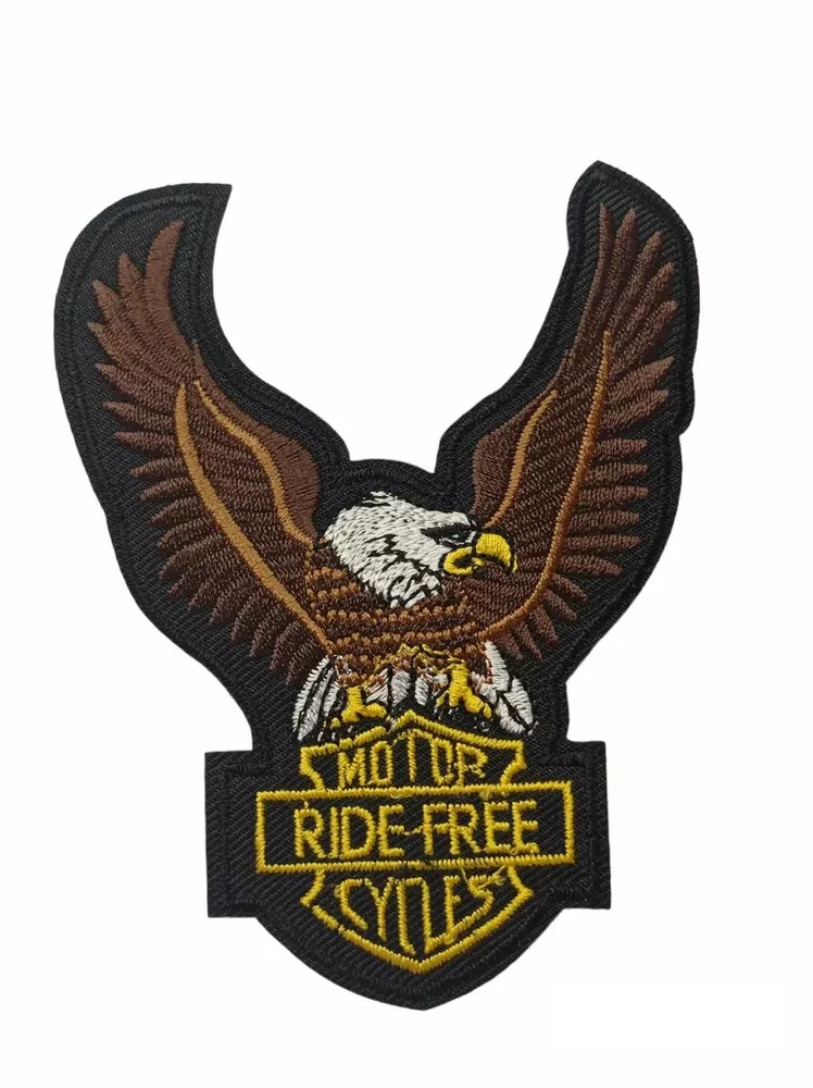 - vzor - bielo-hnedý orol so žltým zobákom, žltý nápis "MOTOR RIDE-FREE"