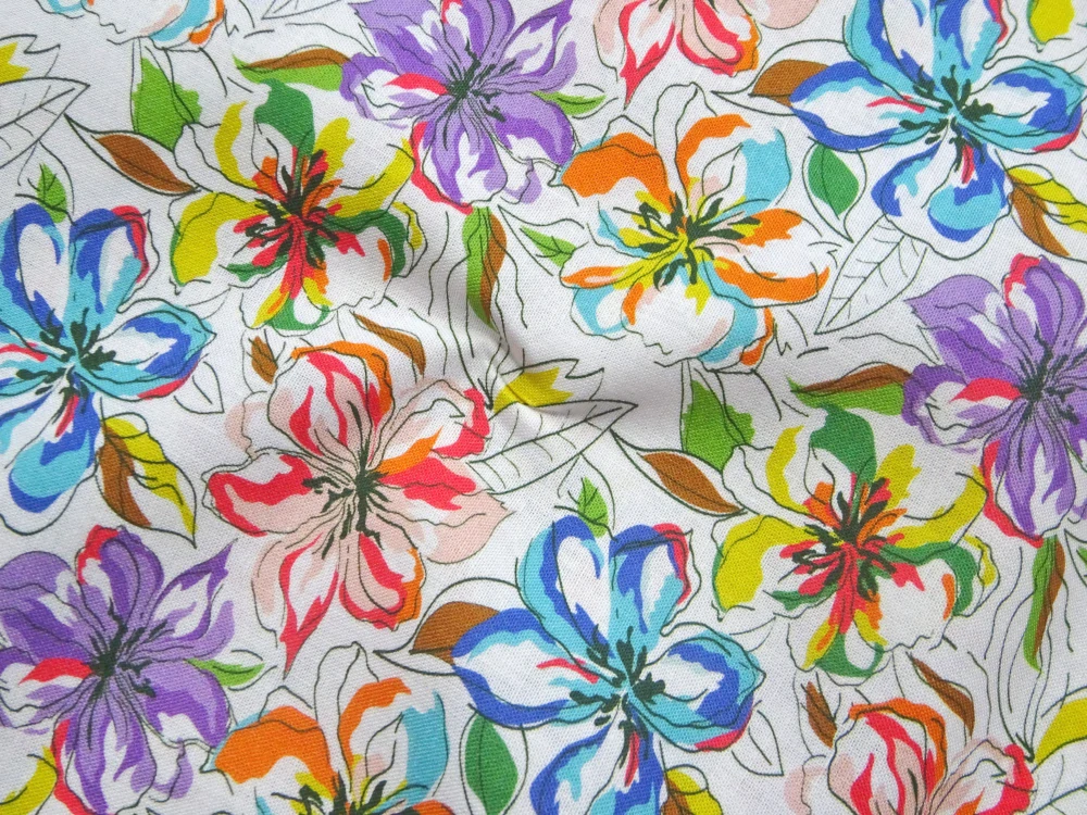 Popelín biely "farebné kvety"Skladom12,00 EUR/ m9,76 EUR bez DPH