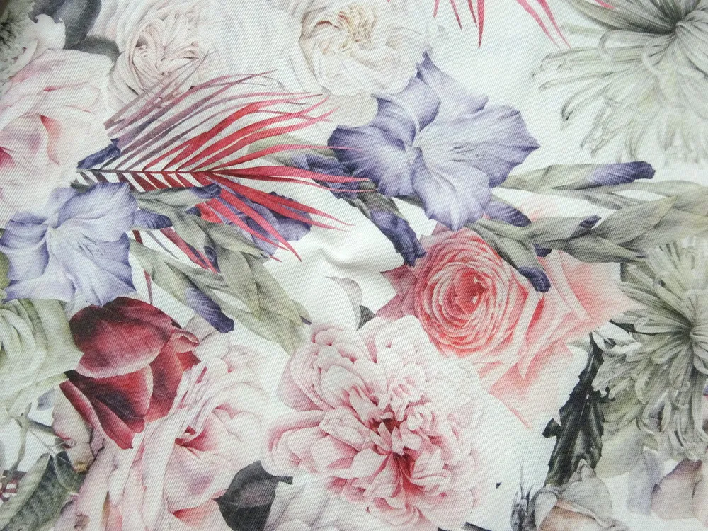 - vzor - ružové, fialové, zeelné, bielo-sivé kvety, listy