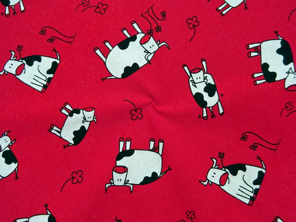 Poťahovka červená "bielo-čierna krava"Skladom7,40 EUR/ m6,02 EUR bez DPH