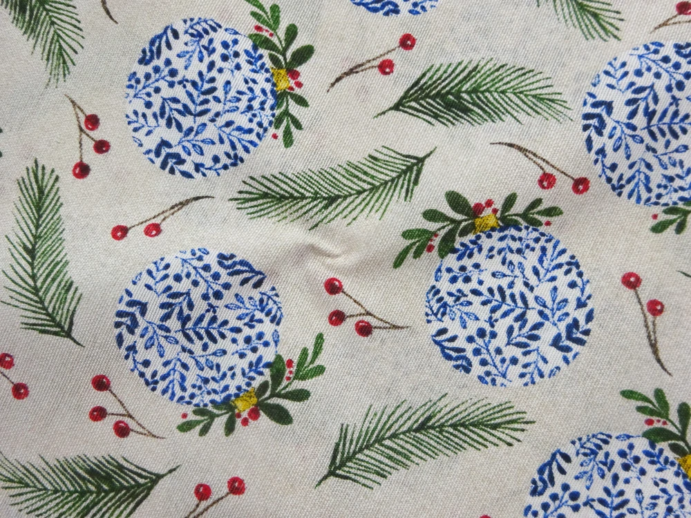 Poťahovka prírodná "bielo-modrá vianočná guľa"Skladom8,00 EUR/ m6,50 EUR bez DPH
