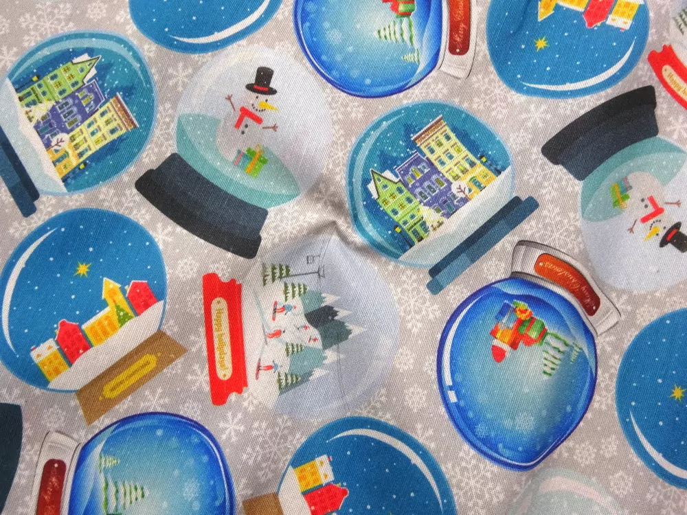 Poťahovka sivá "vianočné gule, vločky"Skladom8,00 EUR/ m6,50 EUR bez DPH