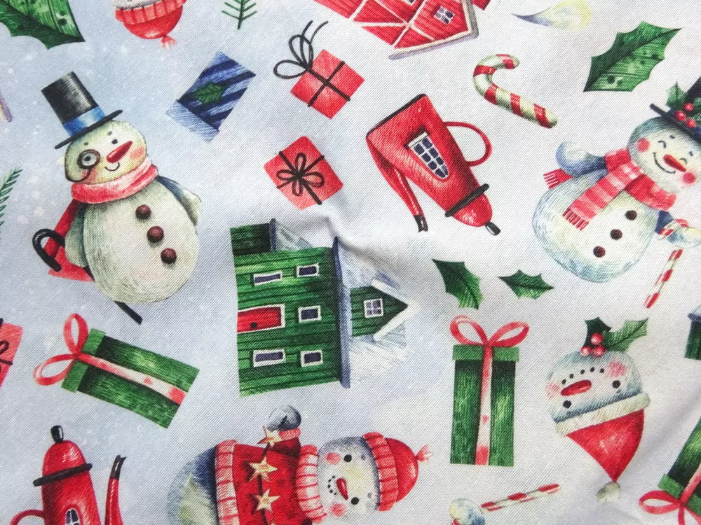 Poťahovka svetlomodrá "snehuliaci, vianočný motív"Skladom8,00 EUR/ m6,50 EUR bez DPH