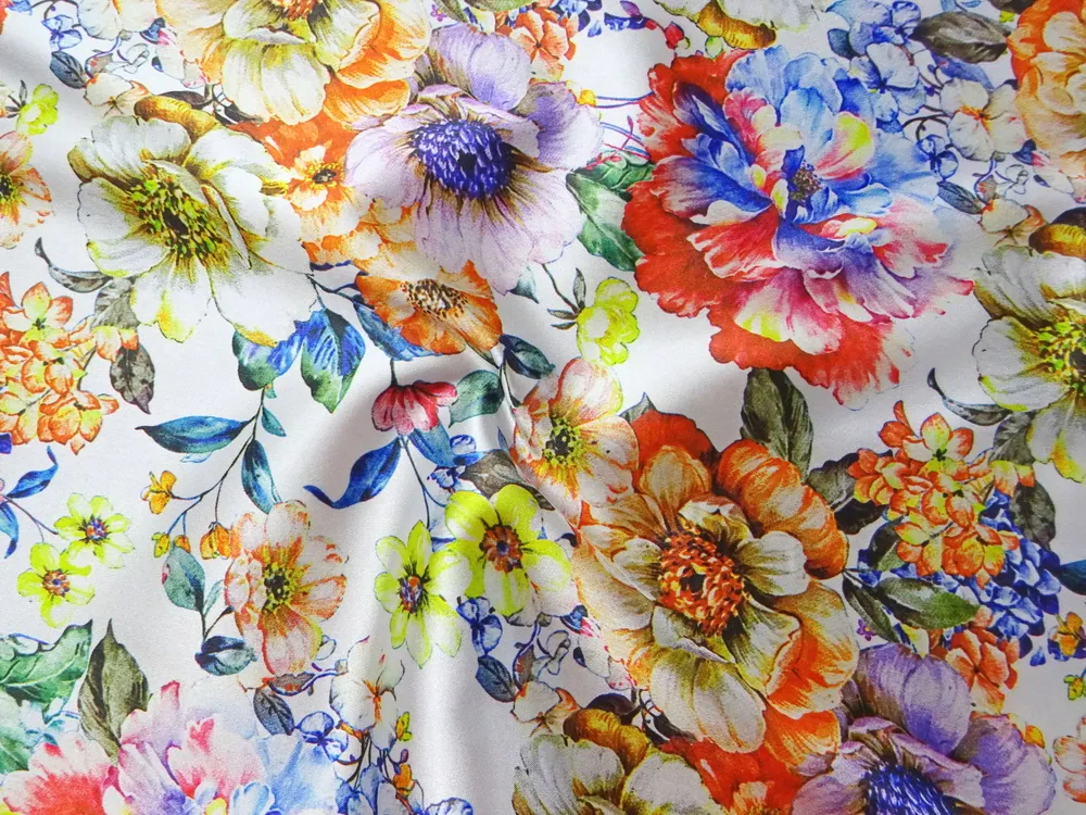 Satén biely "farebné kvety"Skladom10,50 EUR/ m8,54 EUR bez DPH