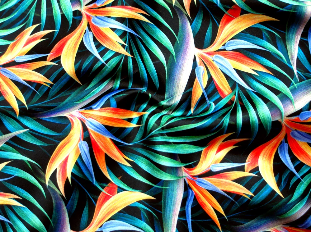 Satén čierny "farebné listy" - potlač na SlovenskuSkladom18,00 EUR/ m14,63 EUR bez DPH