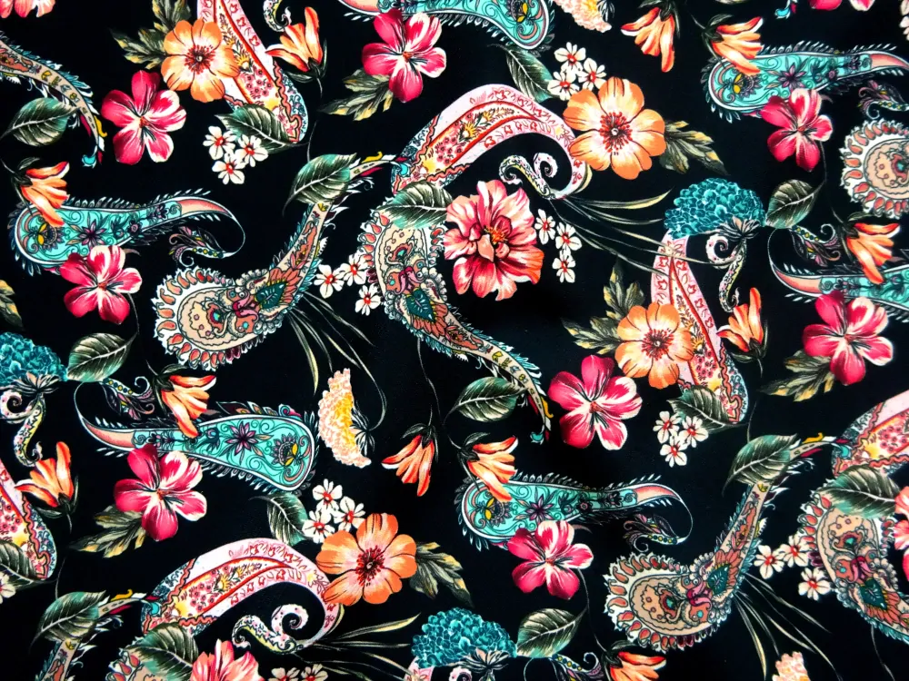 Šatovka čierna "kvety, kašmírový vzor" - Slovenská tlačSkladom16,00 EUR/ m13,01 EUR bez DPH