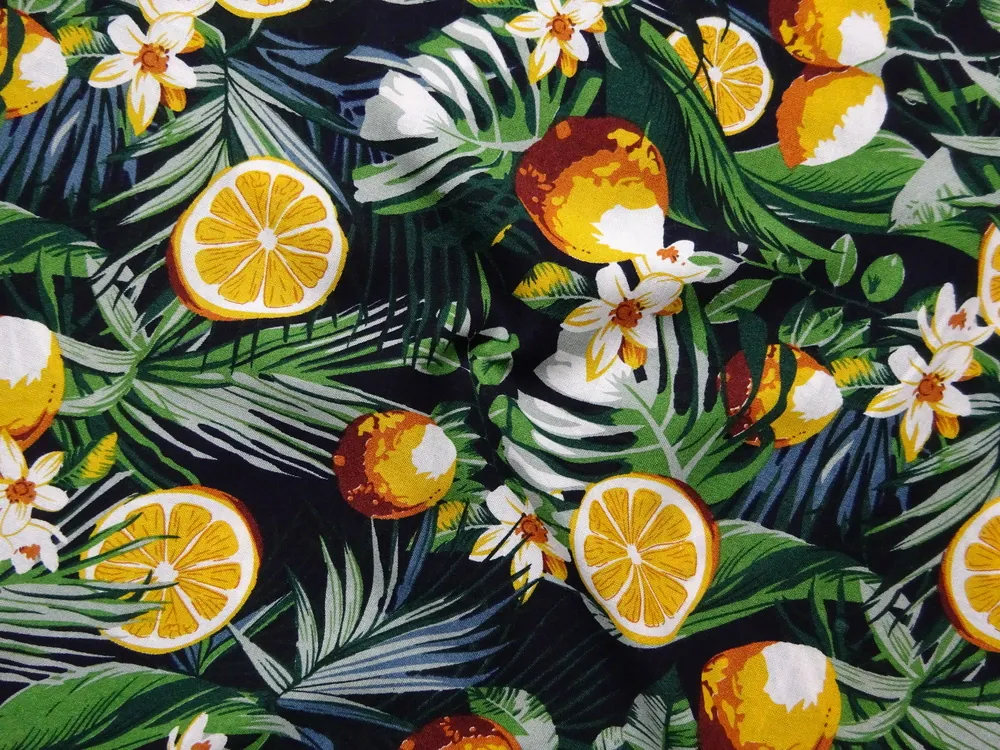 Šatovka čierna "pomaranče, listy"Skladom10,00 EUR/ m8,13 EUR bez DPH