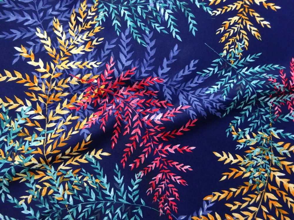 Šatovka Milano tmavomodrá "farebné listy"Skladom12,00 EUR/ m9,76 EUR bez DPH