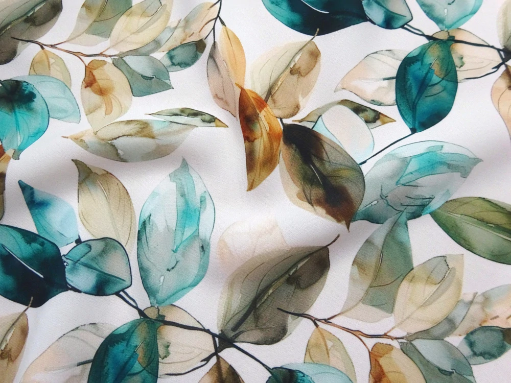 - vzor - tyrkysové, zelené, béžové, hnedé listy