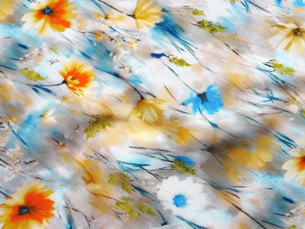 Šatovka prírodná béžovo-modrá "kvety"Skladom17,00 EUR/ m13,82 EUR bez DPH