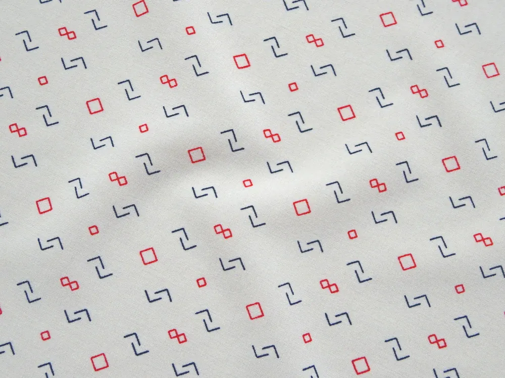 Šatovka s hodvábom smotanová "červeno-tmavomodrý vzor"Skladom12,50 EUR/ m10,16 EUR bez DPH