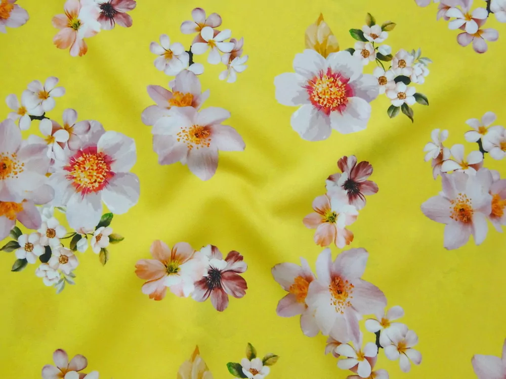 Šatovka s hodvábom žltá "kvety"Skladom14,00 EUR/ m11,38 EUR bez DPH