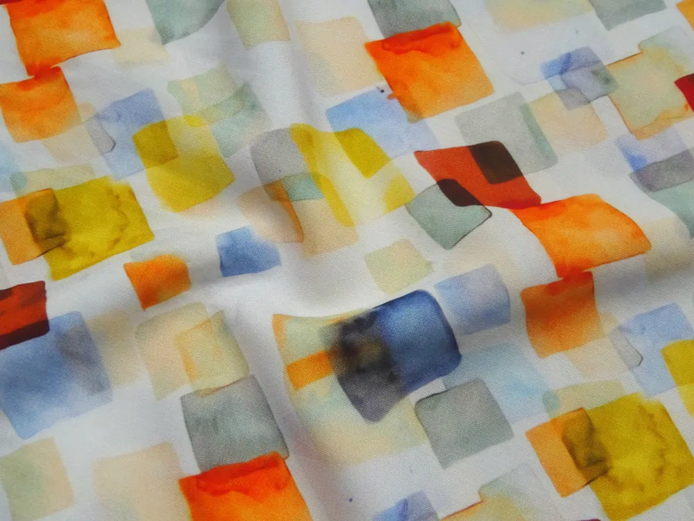 - vzor - žlté, marhuľkové, modré, zelenkavé, sivé, pomarančové, tehlové rozpité štvorčeky