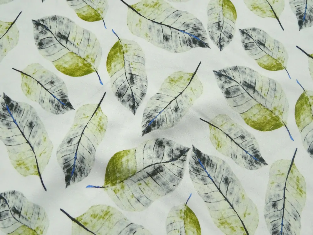 Šatovka smotanová "zelené lístky"Skladom13,00 EUR/ m10,57 EUR bez DPH