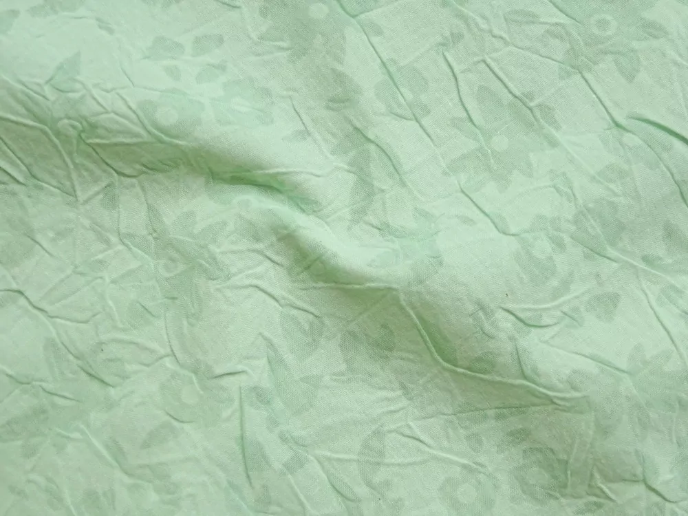 Šatovka zelená krčená "kvety" - vypaľovaný vzor