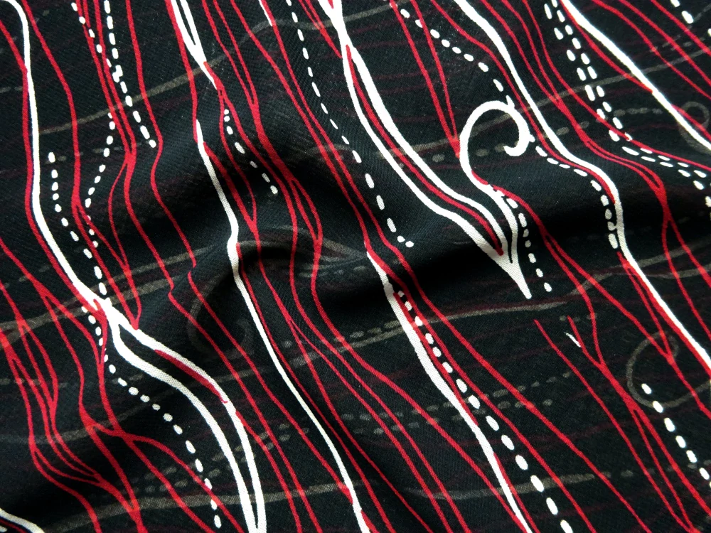 Šifón Red Vortex čierny "smotanová a červená čiara"Skladom6,30 EUR/ m5,12 EUR bez DPH