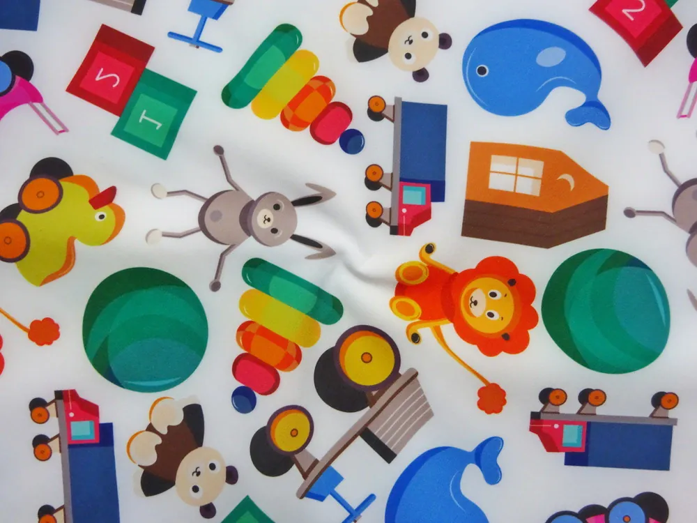 Softshell biely "detské hračky"Skladom12,50 EUR/ m10,16 EUR bez DPH