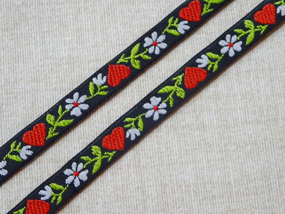 Stuha čierna "biely kvet, červené srdiečko" - 1 cmSkladom1,10 EUR/ m0,89 EUR bez DPH