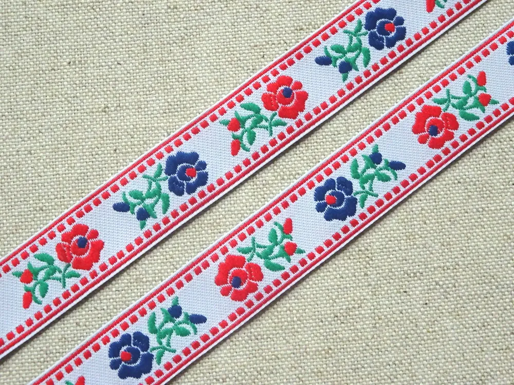 Stuha krojová biela "červený a modrý kvet" - 1,9 cmNie je skladom2,40 EUR/ m1,95 EUR bez DPH