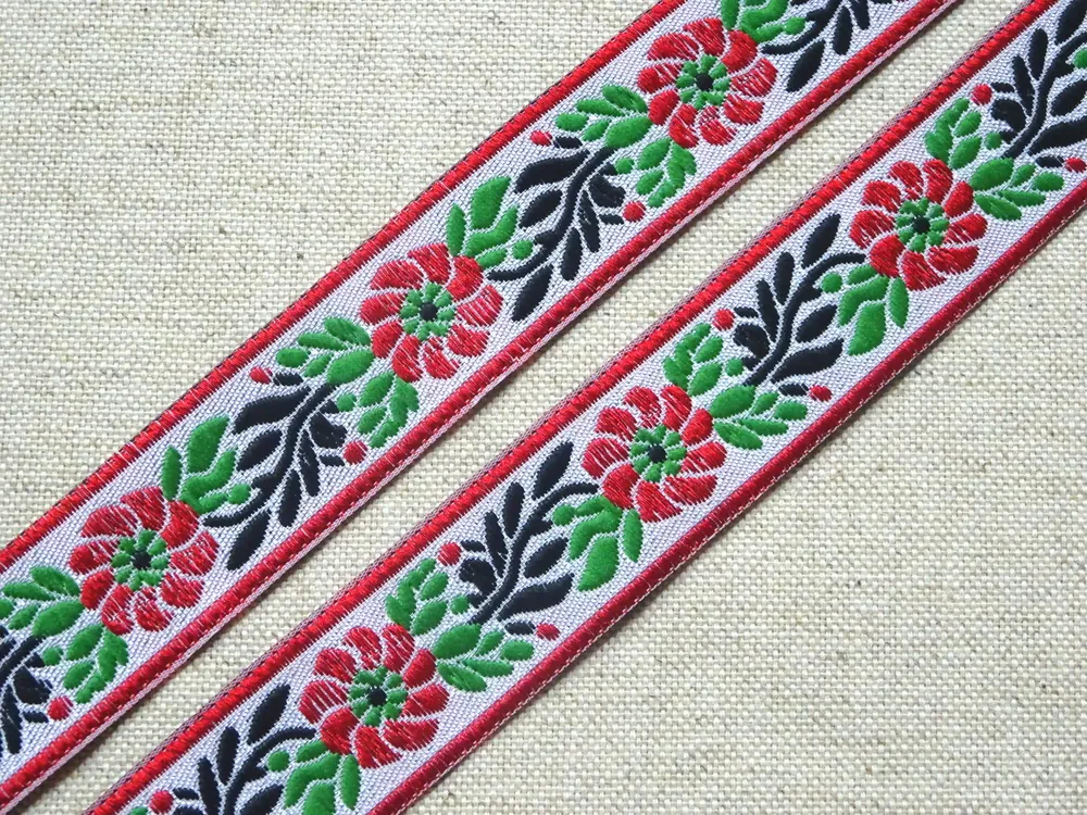 Stuha krojová biela "červený kvet" - 2,5 cmSkladom2,60 EUR/ m2,11 EUR bez DPH