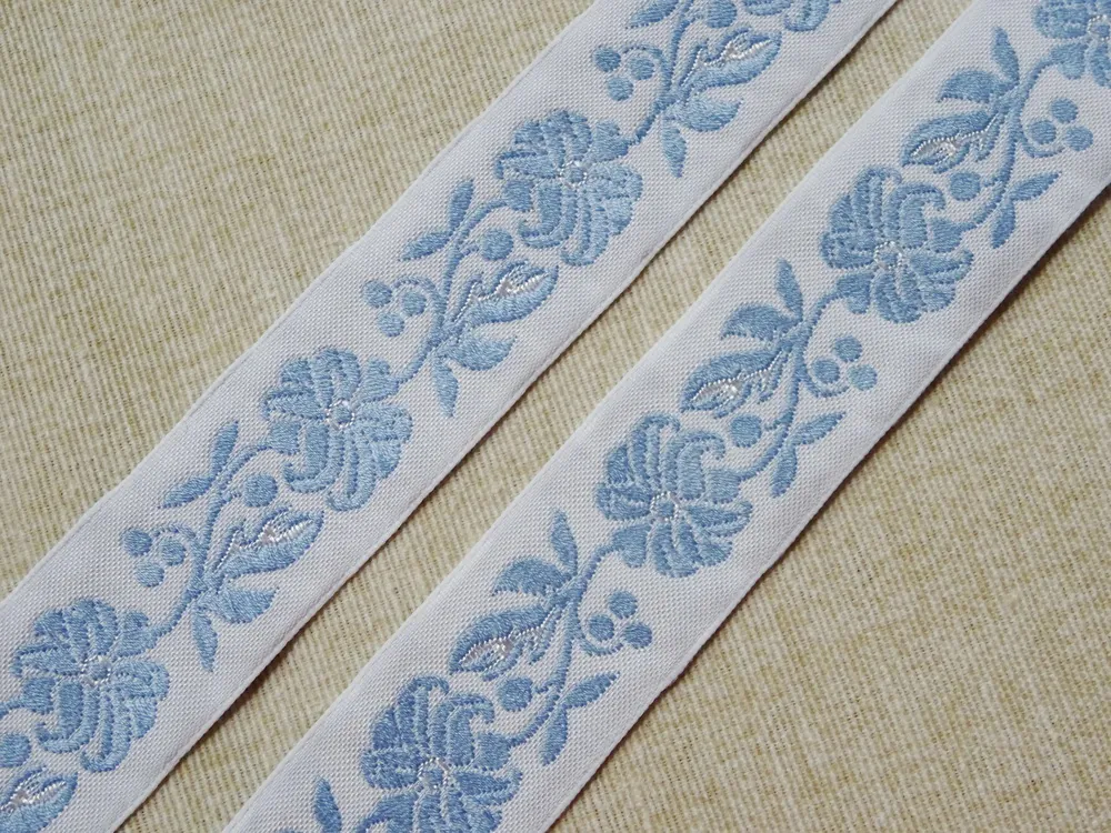Stuha krojová biela "svetlomodrý kvet" - 2,5 cmSkladom1,70 EUR/ m1,38 EUR bez DPH