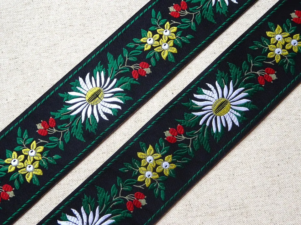 - Stuha krojová čierna "biely a žltý kvet" - 5,5 cm