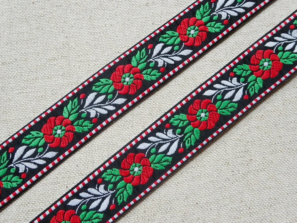 Stuha krojová čierna "červený kvet" - 2,3 cmSkladom2,60 EUR/ m2,11 EUR bez DPH
