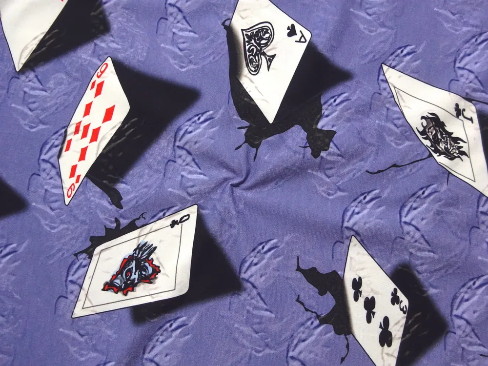 Teplákovina fialovo-modrá "karty"Skladom18,50 EUR/ m15,04 EUR bez DPH