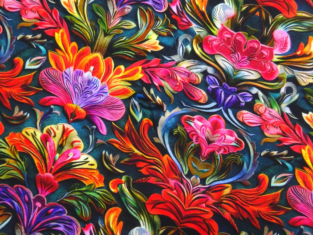 - vzor - žlto-pomarančovo-červeno-ružovo-fialovo-zeleno-hnedé abstaktné kvety